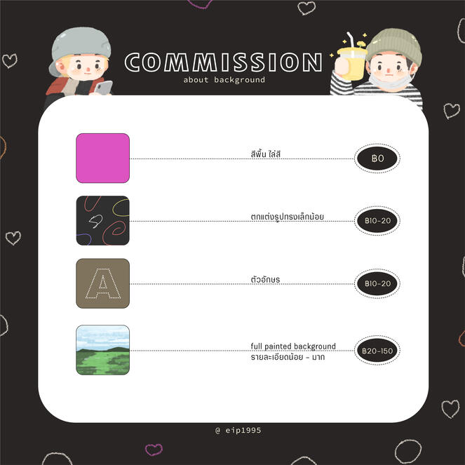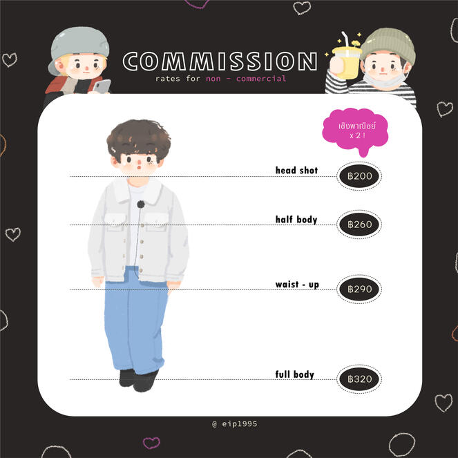 ภาพหมู่มีการคิดราคาที่แตกต่างกันในแต่ละภาพ ซึ่งหากต้องการทราบราคาที่แน่นอนสามารถส่งภาพ reference มาสอบถามได้ที่ dm ตลอดนะคะ